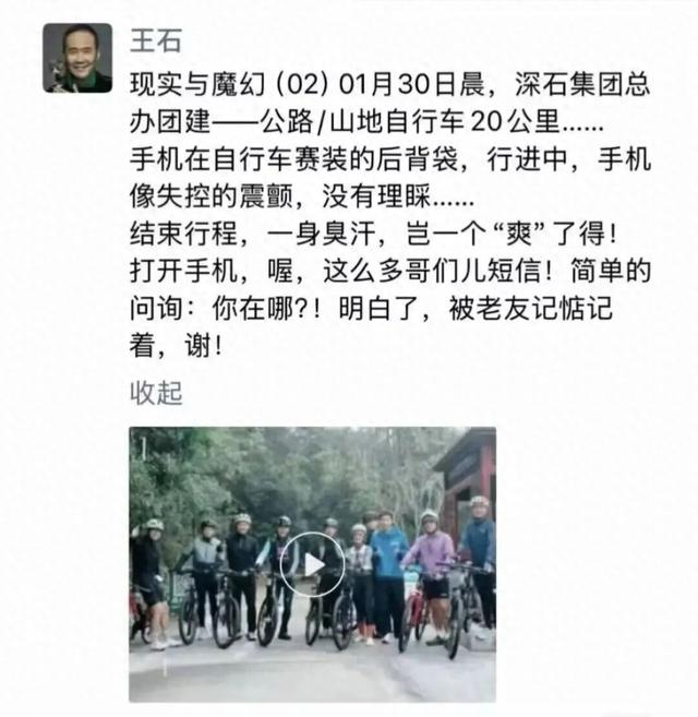 近日,王石在一又友圈和视频主页更新了最新动态,疑似回话失联据说。