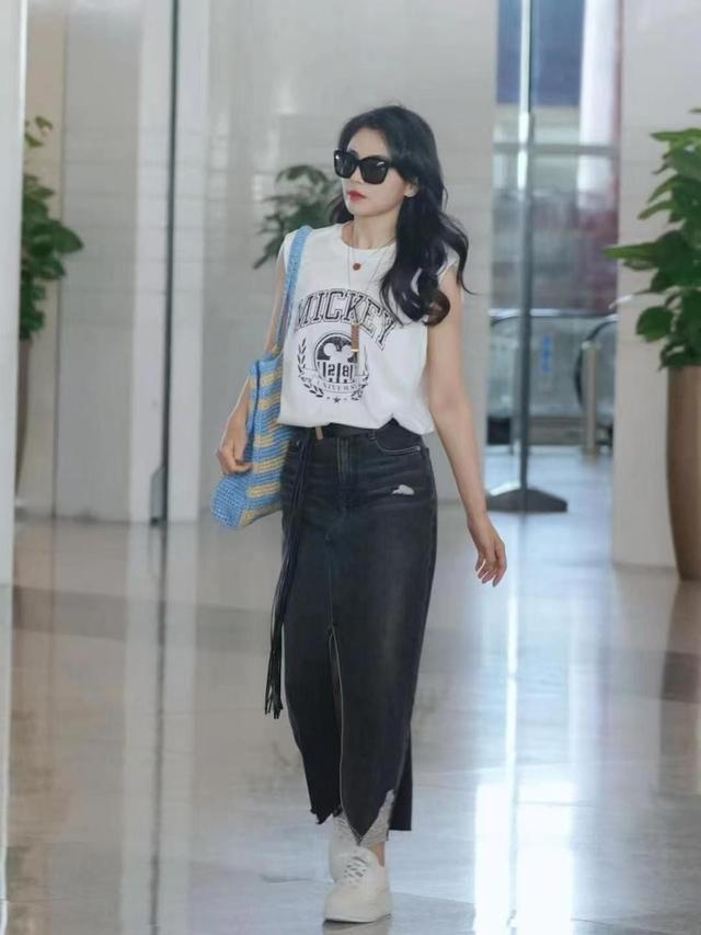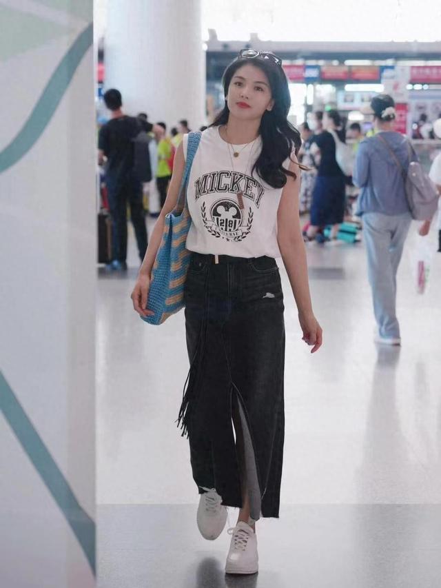 一分彩app下载 47岁“刘涛”带火了从简穿搭:无袖T恤+牛仔裙+白鞋,好意思出新高度