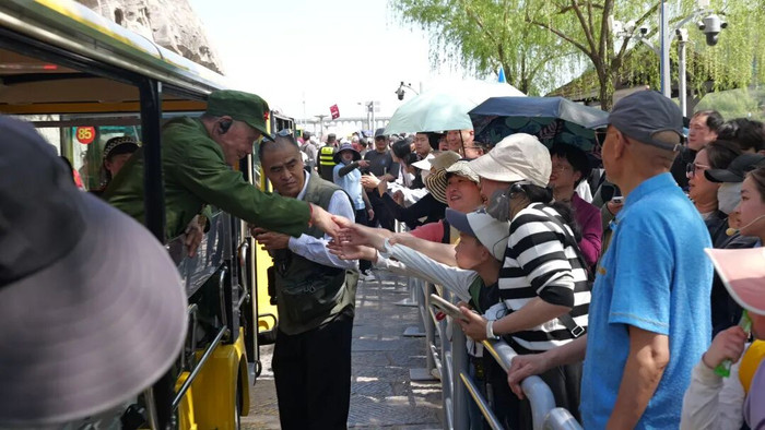 他们于4月10日上昼8点半进园,11点40分足下出园,技艺受到繁密旅客的夹说念迎接,公共纷纷向老兵致意,“旅客就像主东说念主,迎接老英杰们来作客。”龙门石窟商量院副院长张志民说。