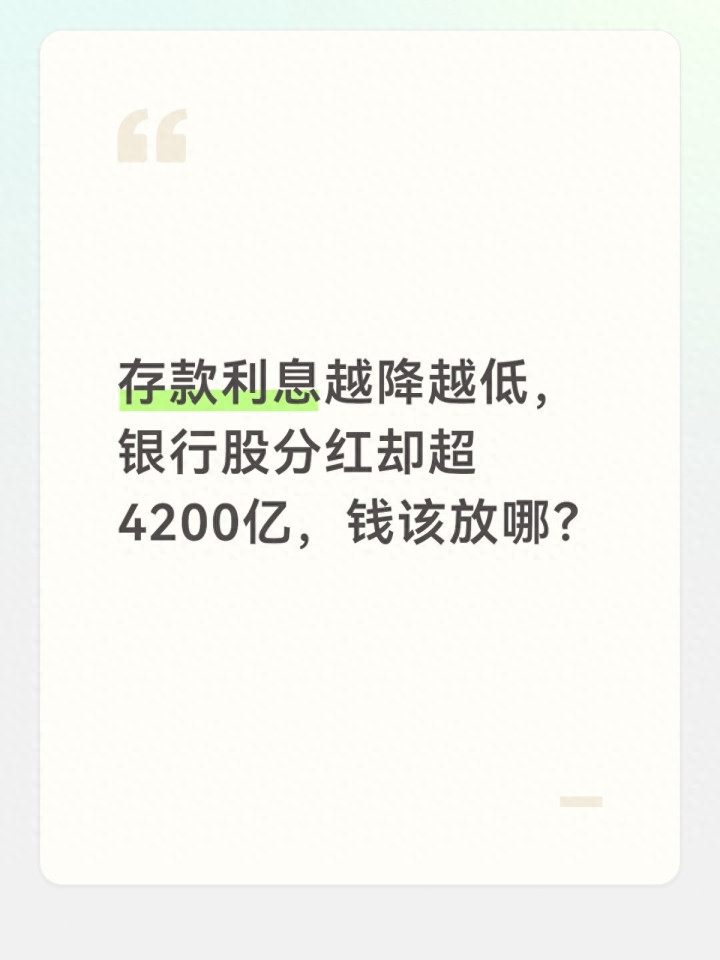 一分彩app官方下载 入款利息越降越低, 银行股分成却超4200亿, 普通东说念主的钱该放哪?