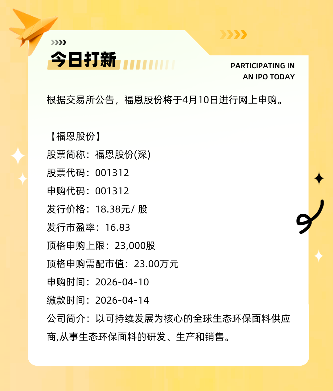 一分彩app官方下载 【打新】福恩股份4月10日申购攻略
