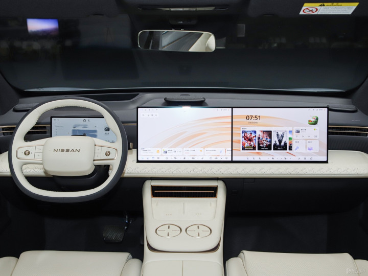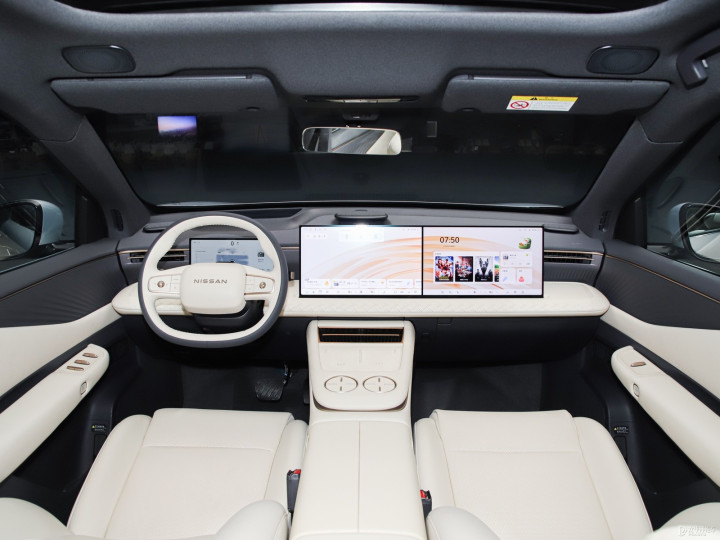 2.内饰座舱:继承双15.6英寸2.5K屏和10.25英寸液晶面容构成的三联屏,搭配63英寸AR-HUD昂首显现,搭载NISSANOS座舱,内置骁龙8295芯片;