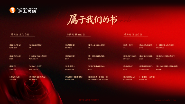妇女节技艺,沪上大姨推出暗夜玫瑰系列饮品,以“暗夜玫瑰”预料传递女性的执意与强烈——正如玫瑰在暗夜中也曾强烈绽开,每一位女性生来便领有属于我方的耀目直快。这次行为中,品牌鸠合馨巢书屋精选27本女性作者创作或聚焦女性视角的成长竹帛,发布“属于咱们的书”女性书单,用翰墨为女性成长赋能,每一册书皆是女性力量的着实写真与精神共识。
